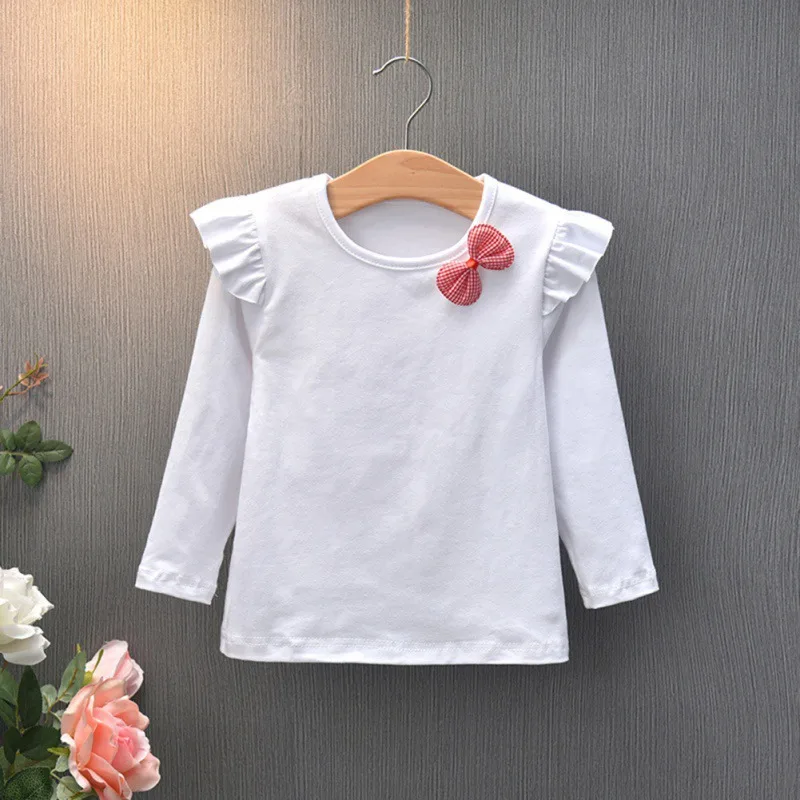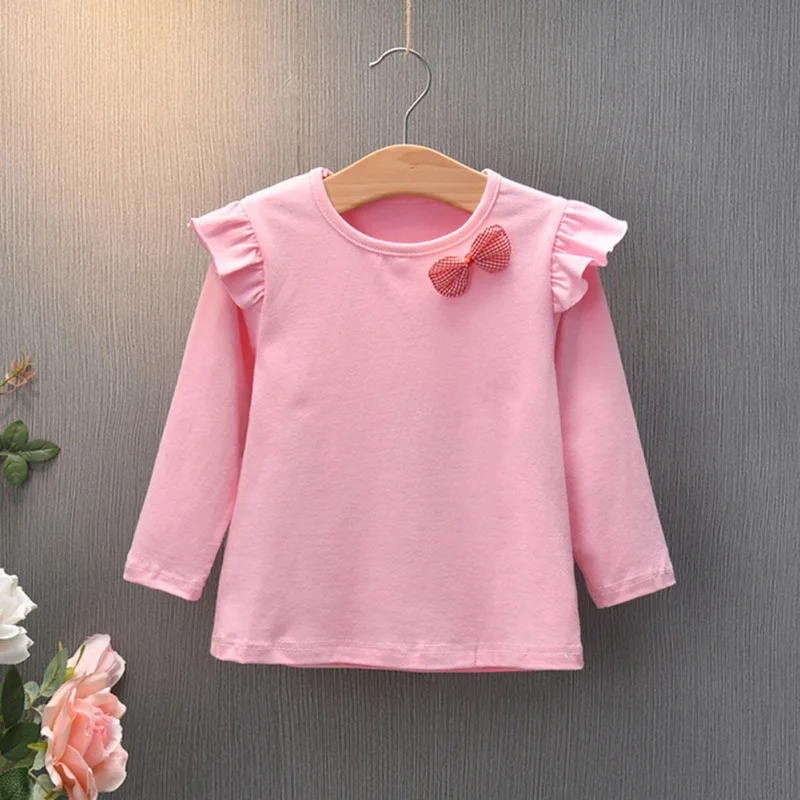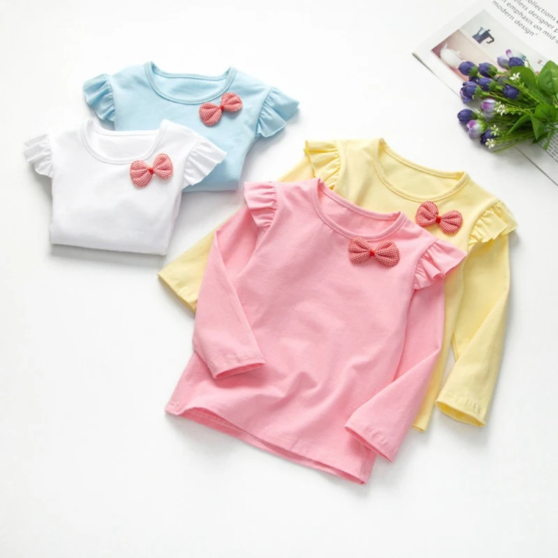 Bargain Automne bébé fille T-Shirts conception de nœud papillon hauts T-Shirts enfants hauts à manches long