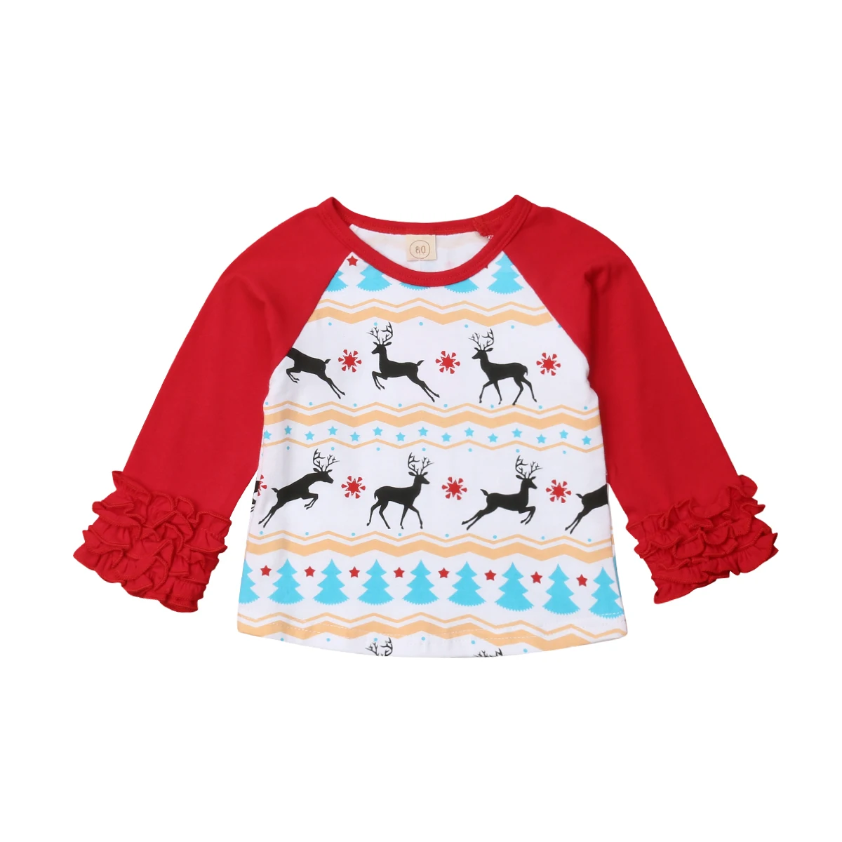 Pre-owned 6M-4Y noël enfant bébé filles t-shirt dessin animé cerf à manches longues volants hauts fille vêtem