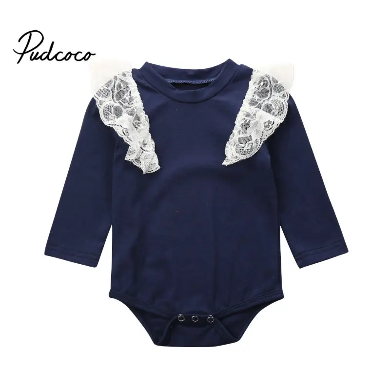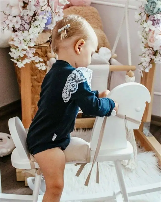 Affordable Enfant nouveau-né bébé fille garçon à manches longues col rond dentelle manches hauts body 2020 été