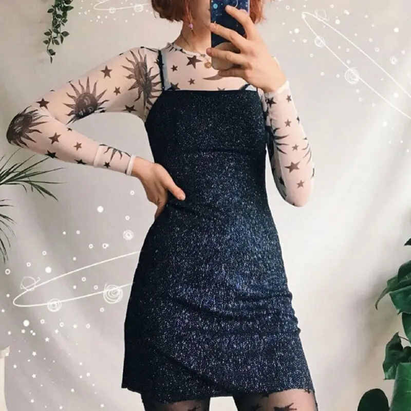 Discount 2019 Fashion Brand New Hot Women Sexy Long Sleeve See Through Mesh Fishnet Casual Top Tee Shirt Sheer Black