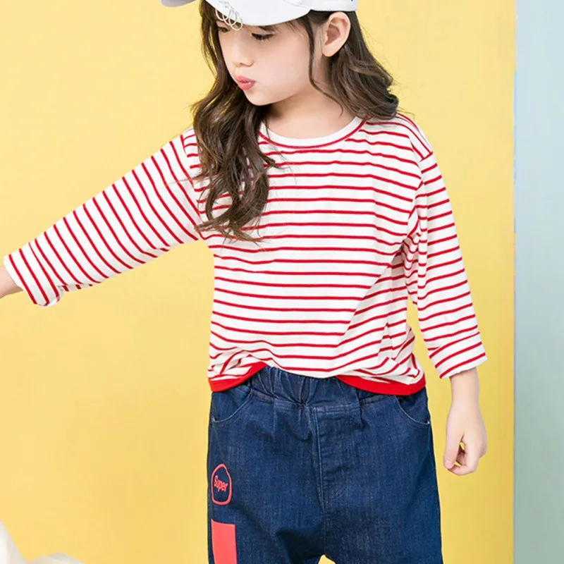 Affordable Automne bébé fille à manches longues T-Shirts enfants rayure impression hauts chemises blouse décon