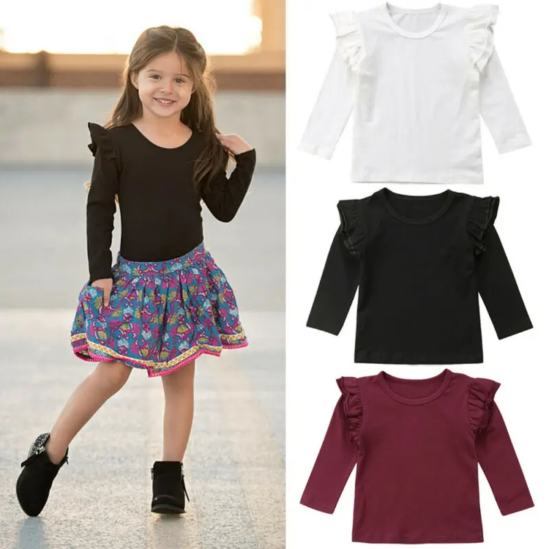Price Bébé fille enfant en bas âge enfants à manches longues à volants hauts pull T-shirt vêtements coule